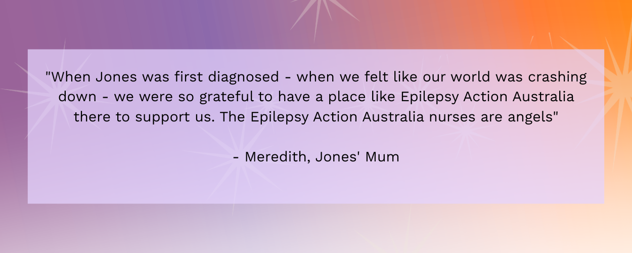 My son Jones is a confident, outgoing and loving little boy. When he was seven years old, he had a seizure, out of the blue. Overnight, our world changed. We felt like our world was crashing down, we were so grateful to have a place like Epilepsy Action Australia there to support us. The Epilepsy Action nurses are angels.
